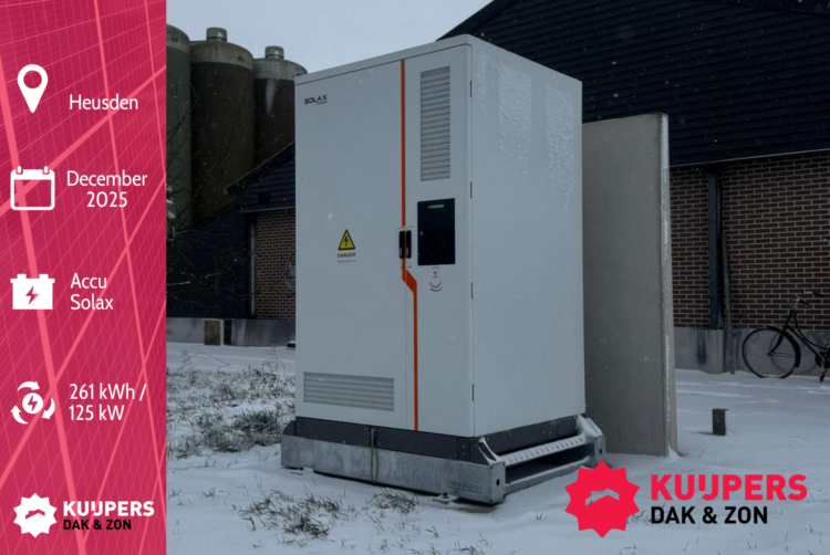 Bij deze pluimveehouder in Heusden hebben een accu van Solax mogen plaatsen. Deze accu heeft een opslagcapaciteit van 261 kWh en laadvermogen van 125 kW.